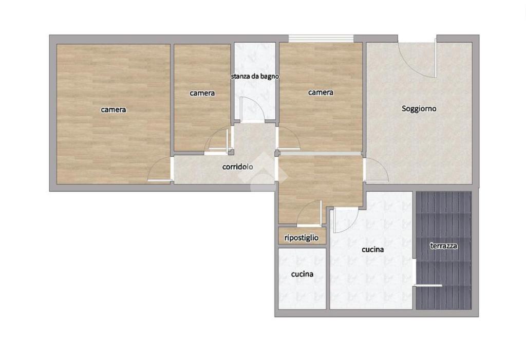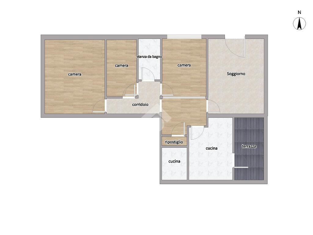 Nella zona notte troviamo tre camere da letto, di cui due matrimoniali e una singola, ideali per famiglie o per chi desidera uno spazio aggiuntivo per ospiti o studio, il bagno è finestrato con box doccia.