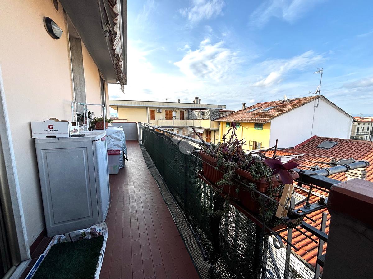L'appartamento si apre sul soggiorno ampio e luminoso grazie alla porta finestra che si affaccia sul primo terrazzo, sulla destra invece troviamo la sala da pranzo con il cucinotto dalla quale si accede al secondo terrazzo utilizzato come zona lavanderia, la zona notte è comprensiva delle tre camere da letto, due matrimoniali e una doppia. Infine completa la zona notte il bagno ampio finestrato.