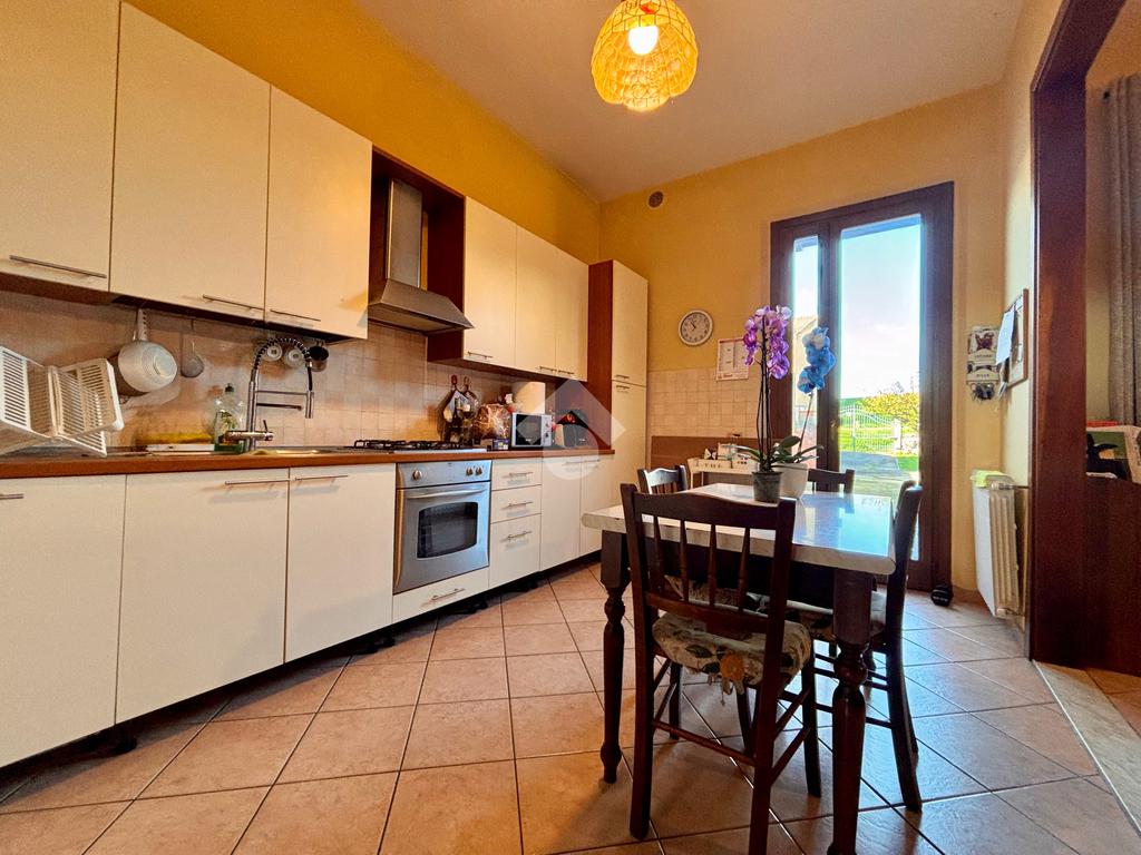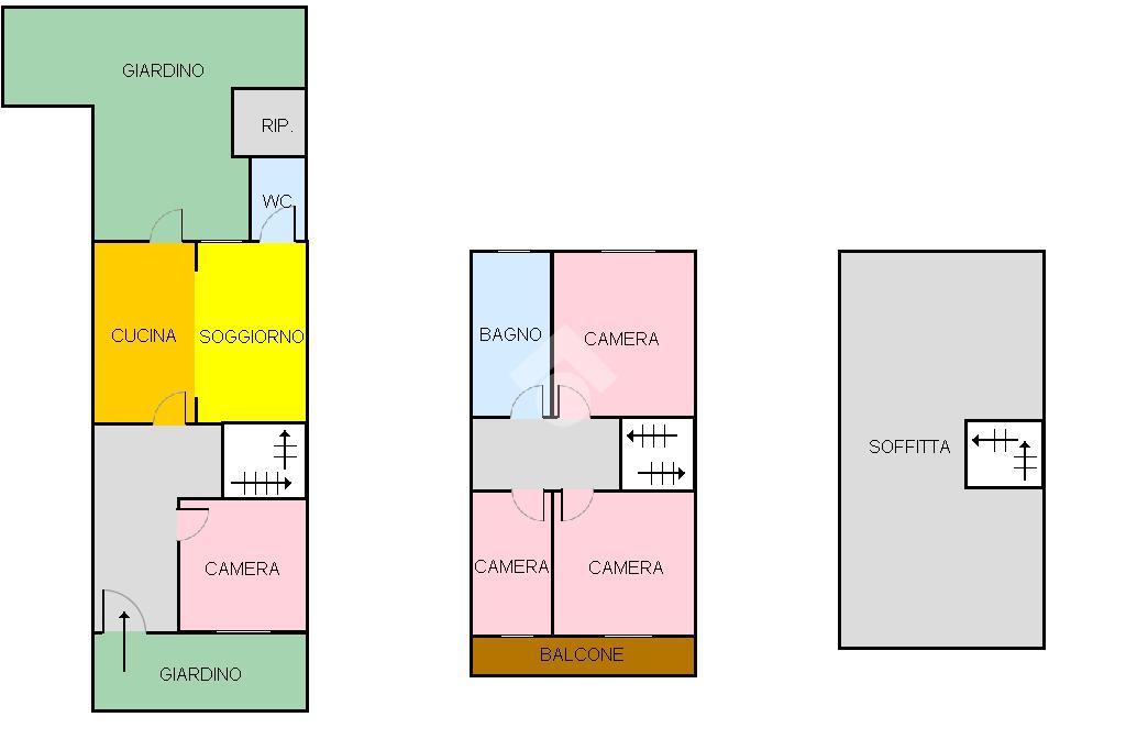 Dalla cucina si accede al giardino tergale di 300 MQ con accesso carrabile, ideale per chi ama la vita all'aria aperta e necessita di spazio per i posti auto, e un comodo ripostiglio esterno.