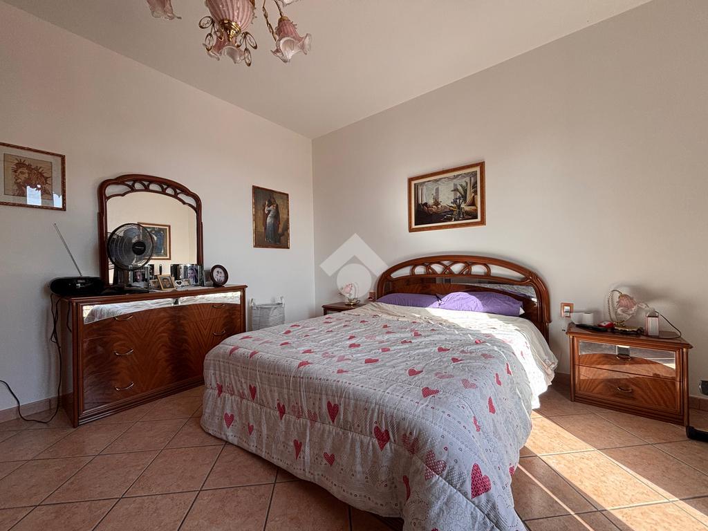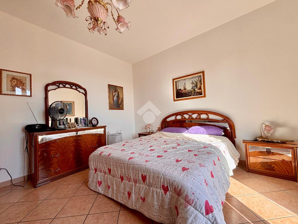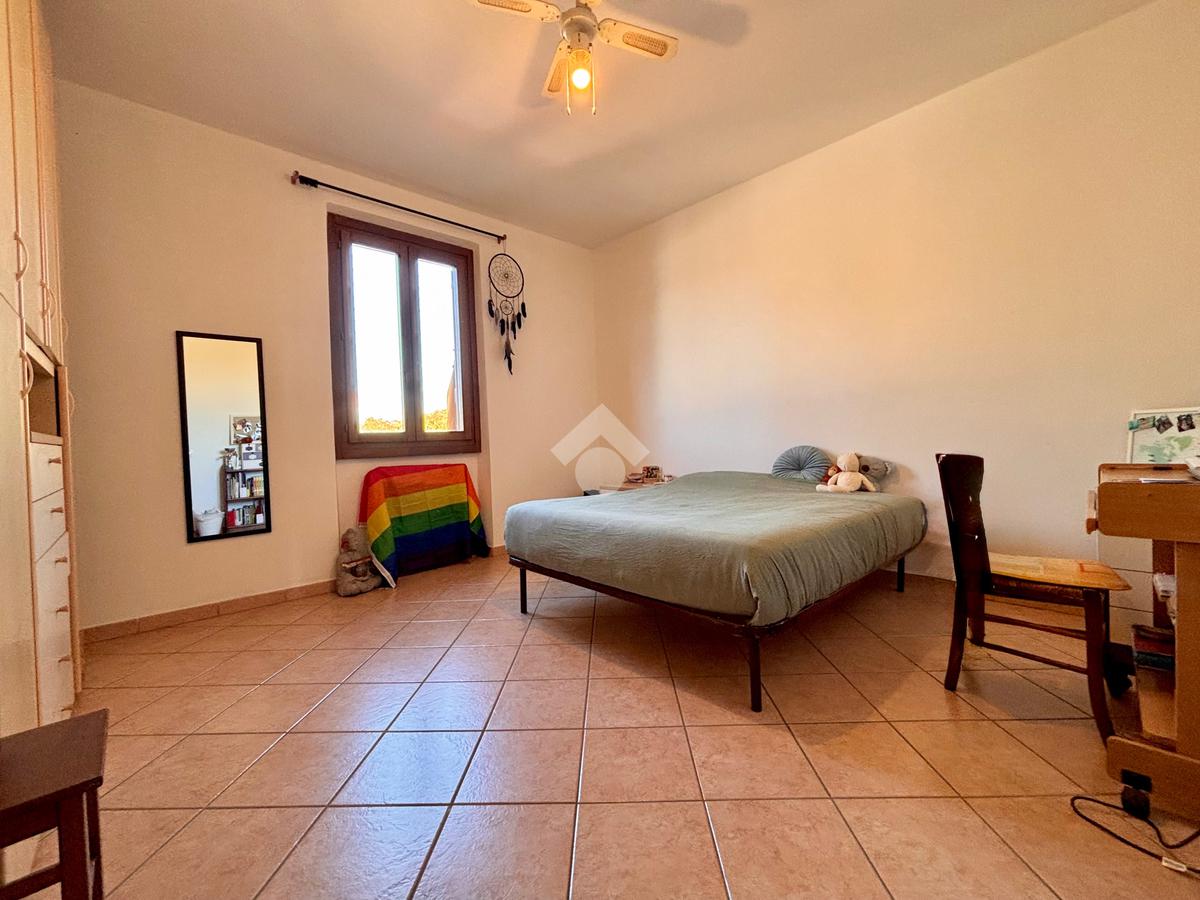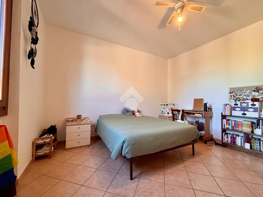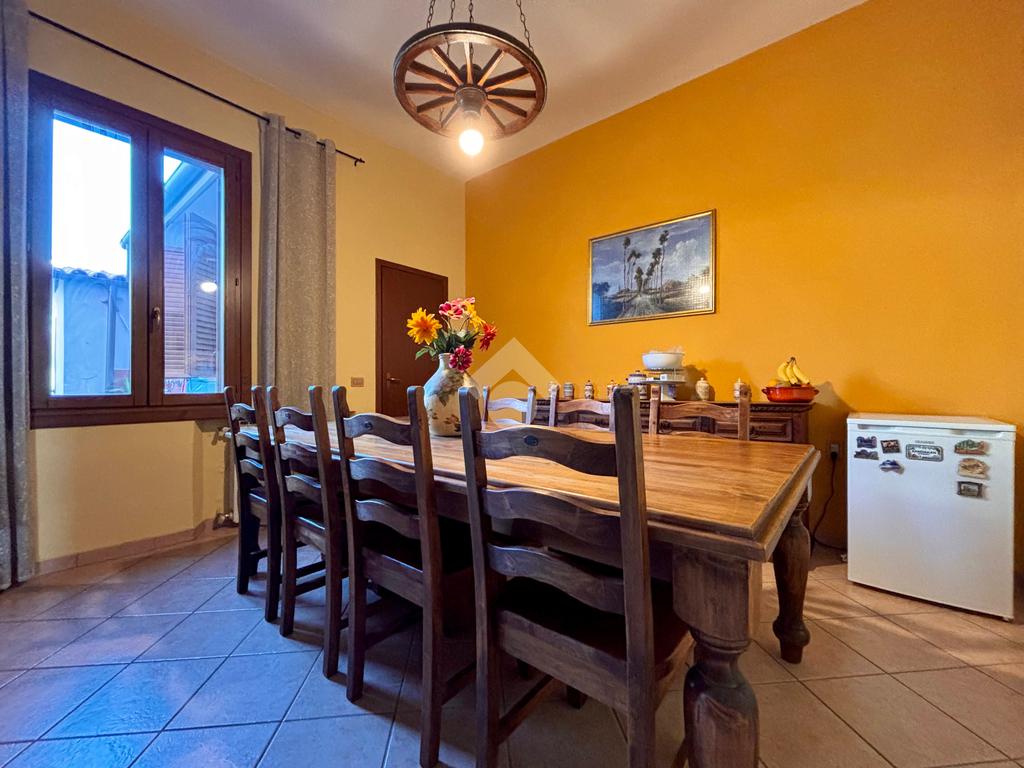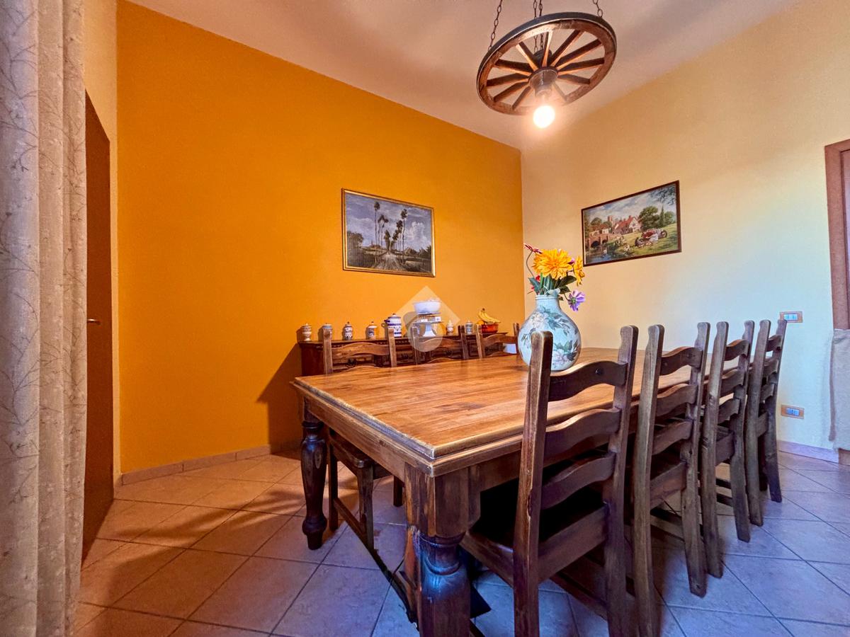 L'ingresso dal resede frontale ci porta sull'ampio disimpegno che divide gli ambienti al piano terra. Qui troviamo la zona giorno con cucina e sala da pranzo, con bagno finestrato, e la prima camera da letto matrimoniale.