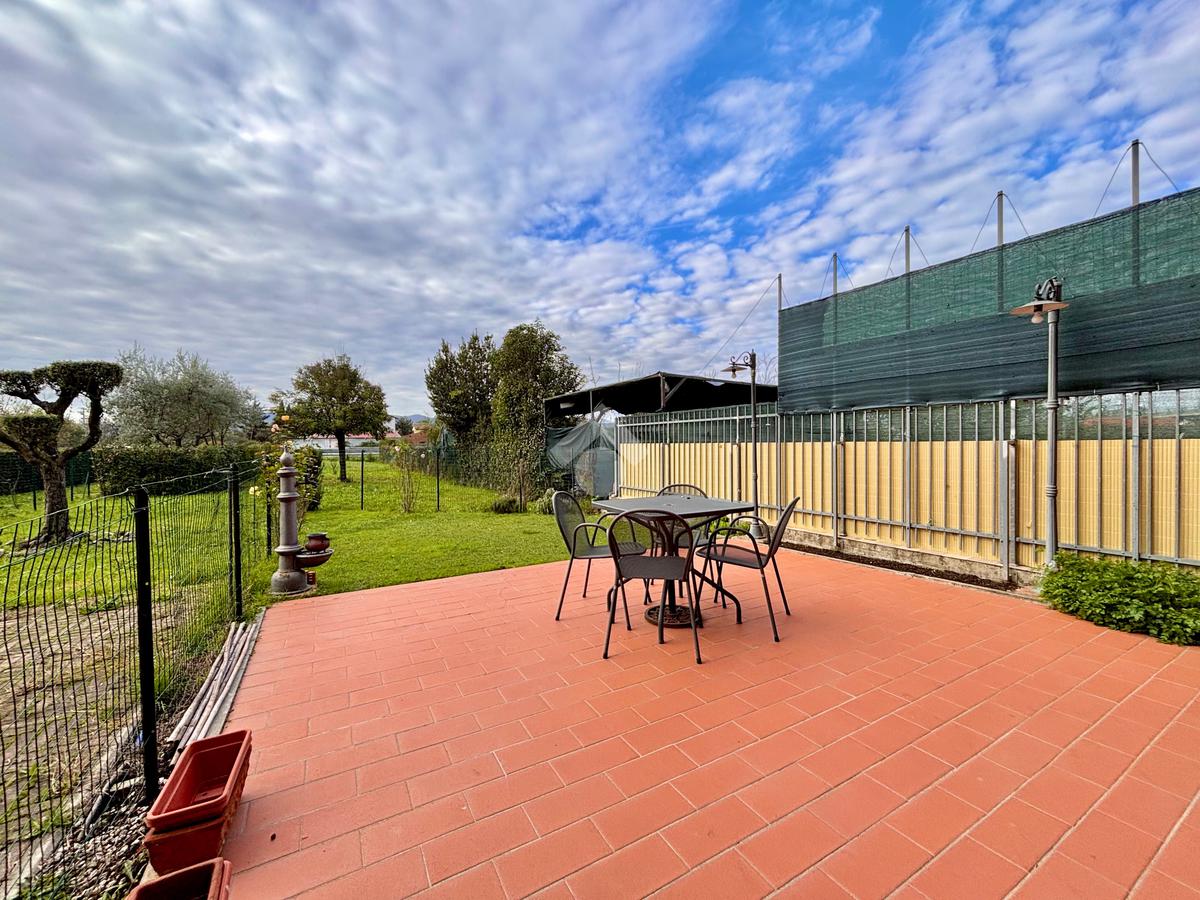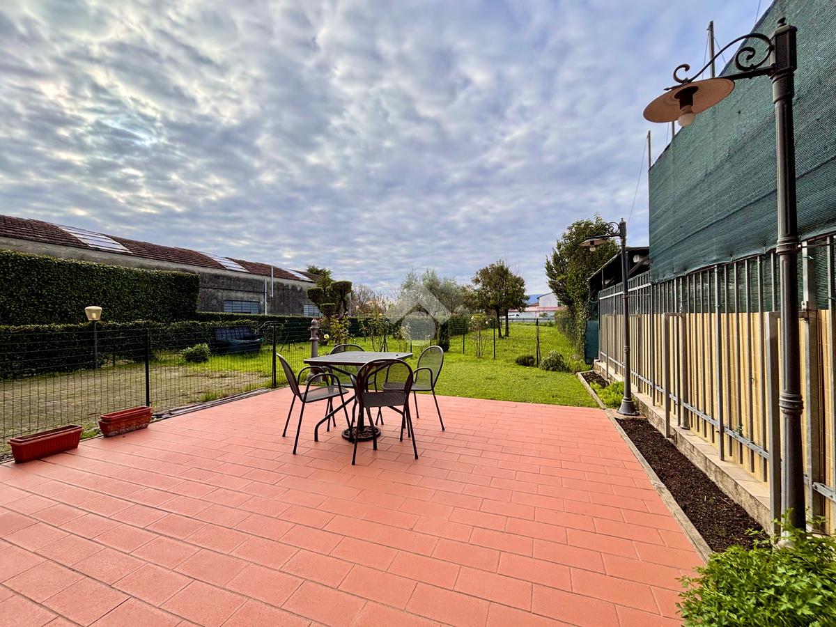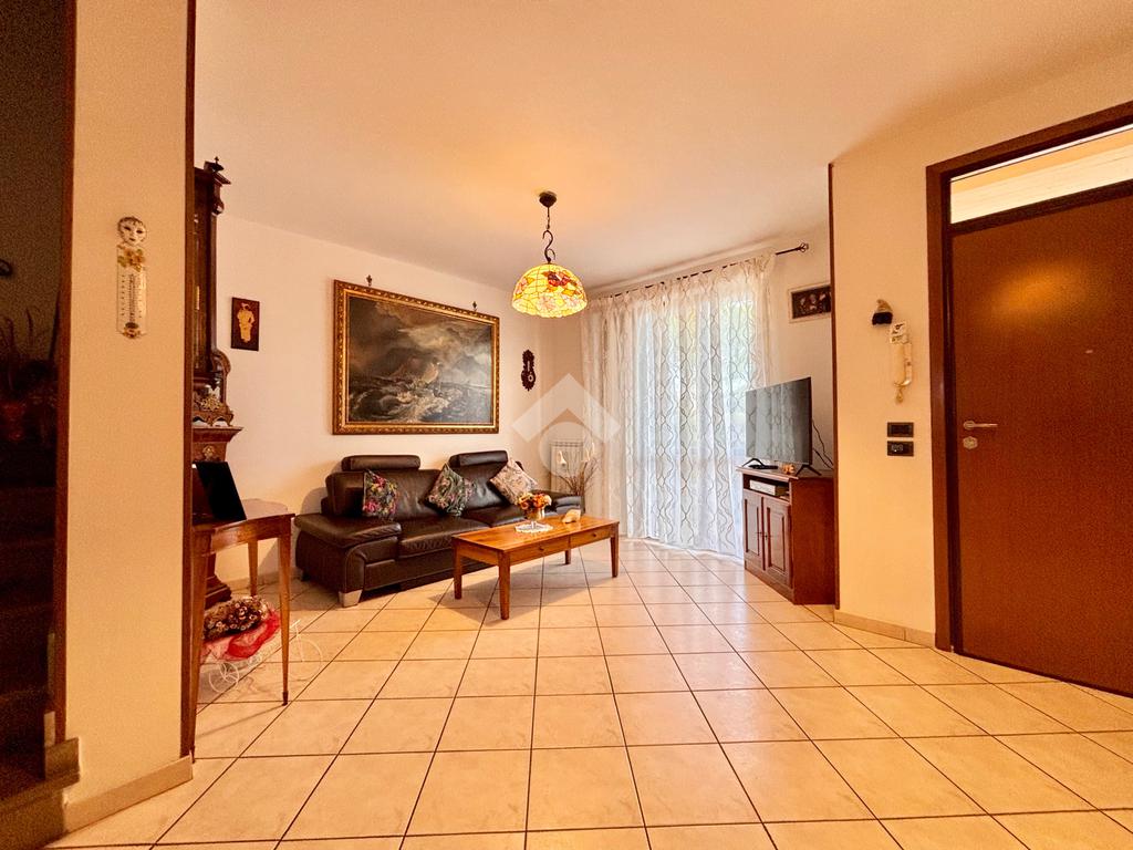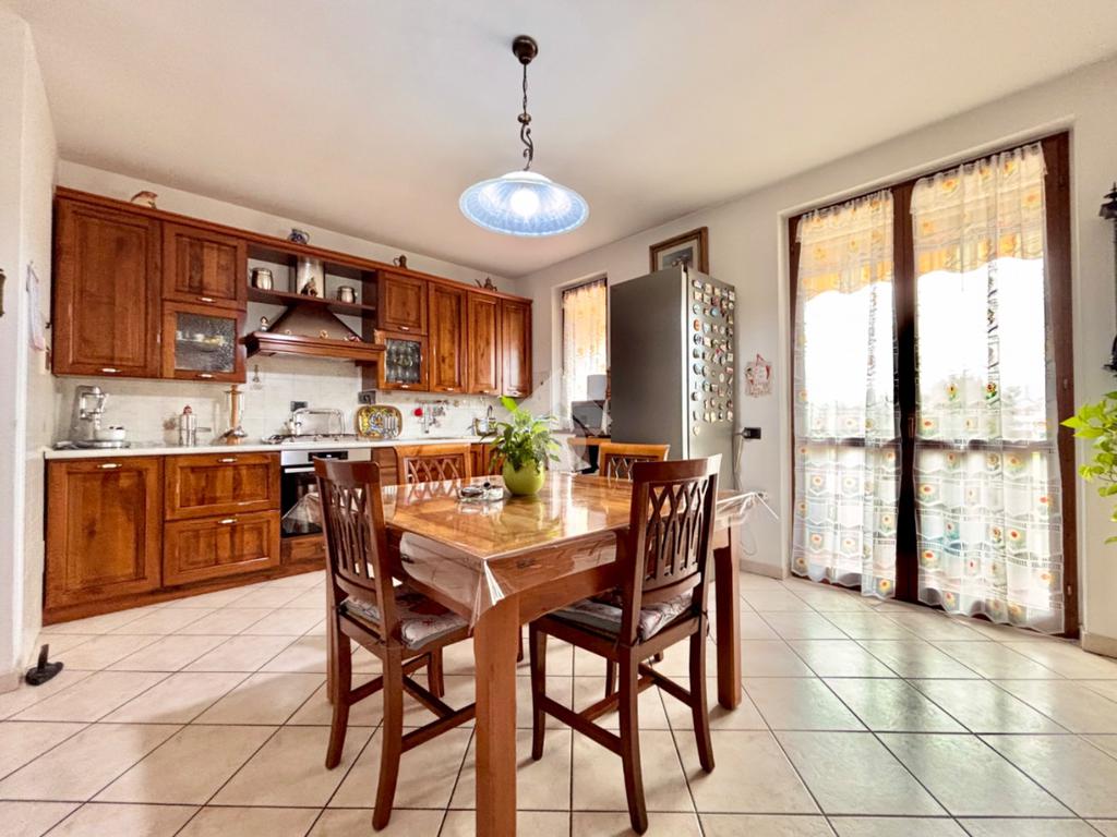 Al piano terra si trova la zona giorno con salotto, cucina abitabile e bagno di servizio. Dalla cucina accediamo al giardino tergale di 50 mq, luogo ideale per momenti di relax all'aperto.